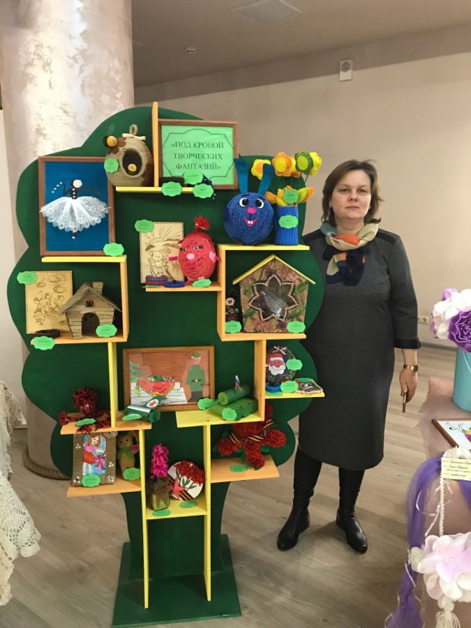 Ольга Владимировна представила на суд жюри свои работы и работы наших воспитанников, объединив все поделки в оригинальную выставку «Под кроной творческих фантазий»