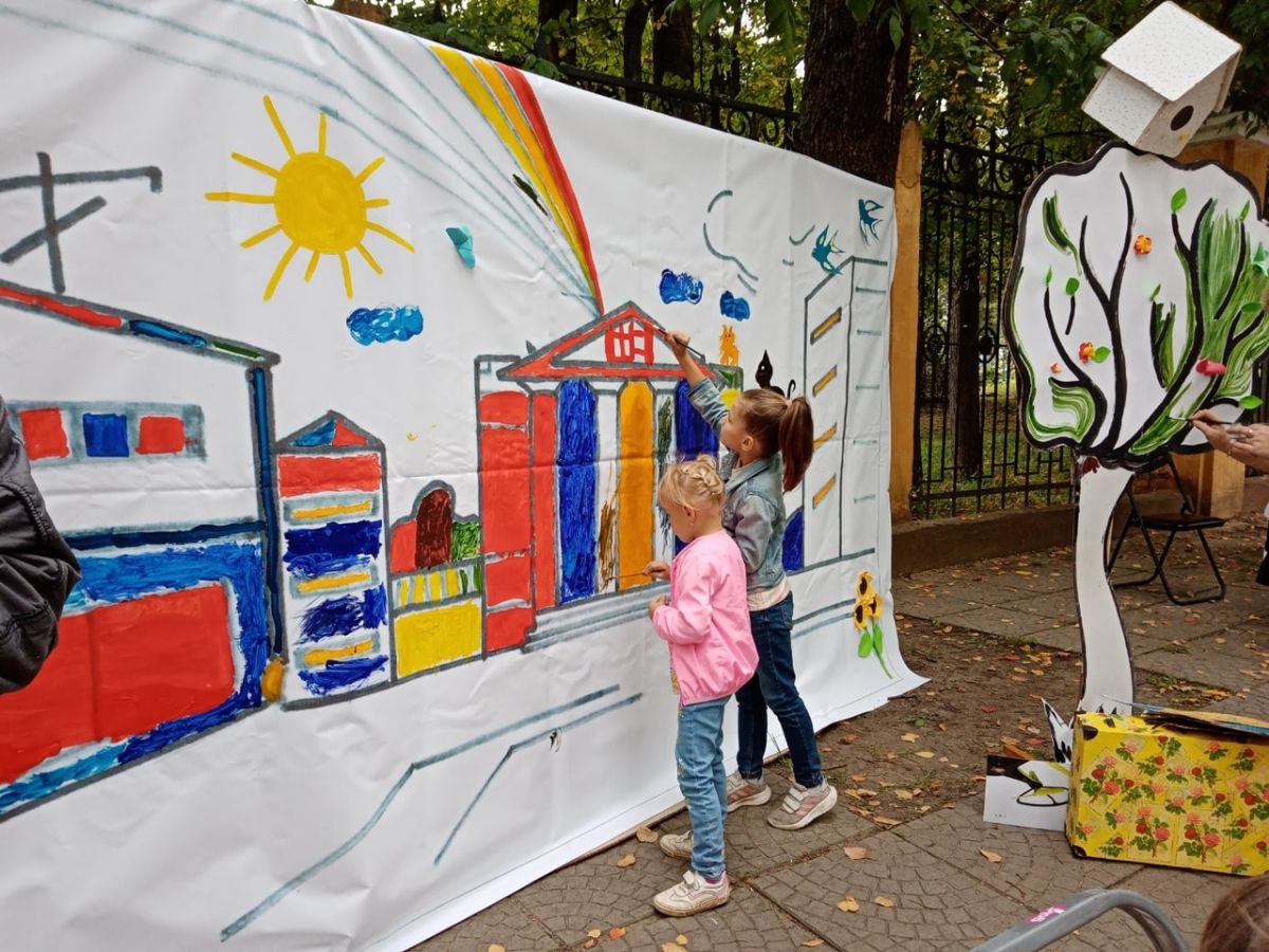 Все желающие могли принять участие в мастер-классе по изготовлению праздничной эмблемы и раскрасить город будущего.